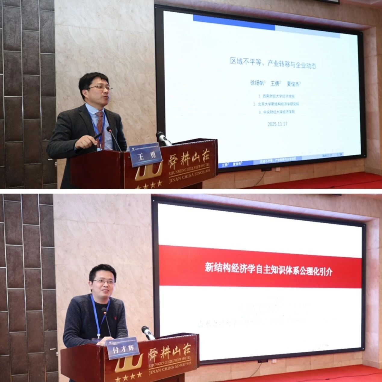 专题报告环节,王勇教授和北京大学新结构经济学研究院研究员、课程教材与案例报告研发中心主任付才辉教授分别作了题为《区域不平等、产业转移与企业动态》和《新结构经济学知识体系公理化引介》的专题报告。随后,全国新结构经济学联盟优秀成员单位代表进行了交流发言。