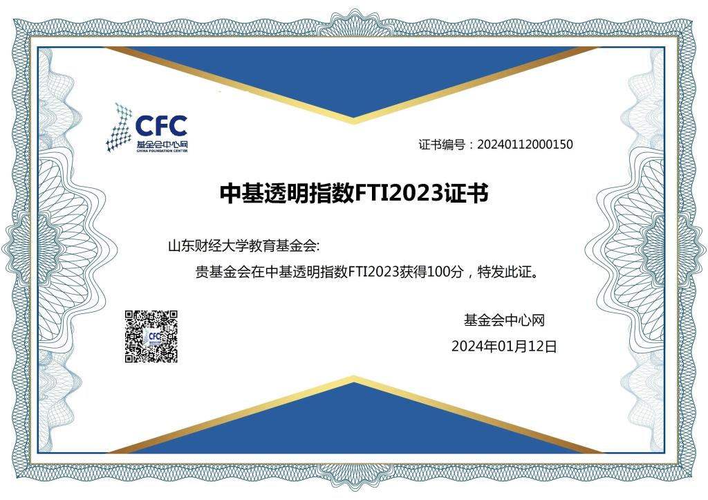 1月12日,中国基金会行业数据发布会在北京召开,会议发布了中基透明指数FTI2023报告。山东财经大学教育基金会获得了100分的成绩,是山东省省属高校唯一一家获得满分的基金会。