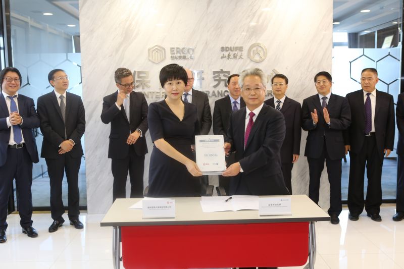 卓志表示,三年来学校与德华安顾人寿多次合作,殷晓松、思勇明作为我校客座教授数次到山财大讲学,为师生带来最前沿的保险知识,合作每年都有新亮点。德华安顾人寿保险有限公司成立以来不忘社会责任,重视支持教育事业发展,在山东乃至全国的影响力逐年提升。3月份,学校与德华安顾人寿签署战略合作协议,着力建立山东财大—德华安顾人寿保险研究中心,编写并发布《山东省保险蓝皮书》,举办保险论坛,在学术研究、社会服务等方面做了大量工作,取得了许多成绩。今年学校申请新增的精算学本科专业获得教育部备案通过,成为山东省内唯一、全国仅有的6所获批设立精算学本科专业的高校。该奖学金的设立是双方战略合作协议的重要落实举措,是又一项合作项目的落地,我校因此成为全国迄今为止被教育部批准的六所精算学本科专业高校中唯一设有精算奖学金的学校。我代表将来获得此奖学金的同学们表示感谢,同时欢迎瑞思博士及德华安顾人寿领导来山财大讲学、指导。