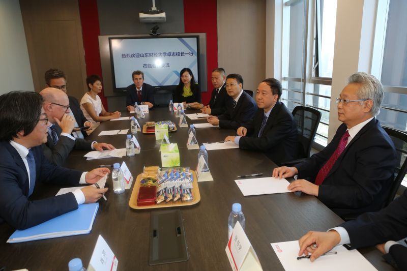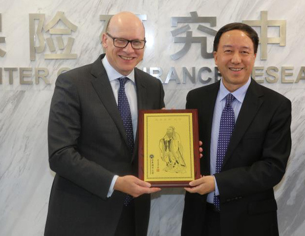 2017年9月12日下午,山东财经大学校长卓志与德国安顾保险集团公司董事会主席瑞思博士在德华安顾人寿保险有限公司济南总部进行会晤。卓志深情回顾在德国的学习经历,双方交流保险业的发展,总结学校与德国安顾及德华安顾人寿的合作经验,探讨进一步合作空间。