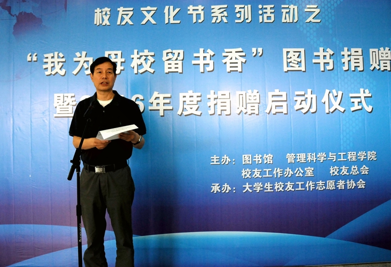 仪式上,90级校友巴树青、91级石玉宝、93级校友高涛分别向学校捐赠2万元,91级校友霍海东向学校捐赠3000元,管理科学与工程学院90信息管理班向学校捐赠4000元,聂培尧代表学校接受了捐赠并为向捐赠校友颁发了捐赠证书和校友文化节纪念牌。图书馆馆长尉雪波代表学校方接了校友捐赠的个人专著等书籍。