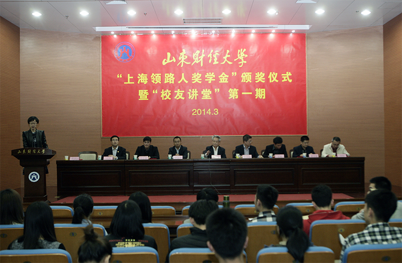 2014年3月27日下午,上海领路人奖学金颁奖仪式暨校友讲堂第一期在燕山校区图书馆报告厅举行。我校副校长胡文波和上海领路人照明工程有限公司董事长(我校2001级市场营销专业校友)朱上民、副总经理许志平、朱辉、肖志强,总经理办公室主任唐海英出席颁奖仪式。校友办公室、学工部、校团委、工商管理学院负责人和学生代表参加颁奖仪式并聆听报告。仪式由校团委书记邓迎迎主持。