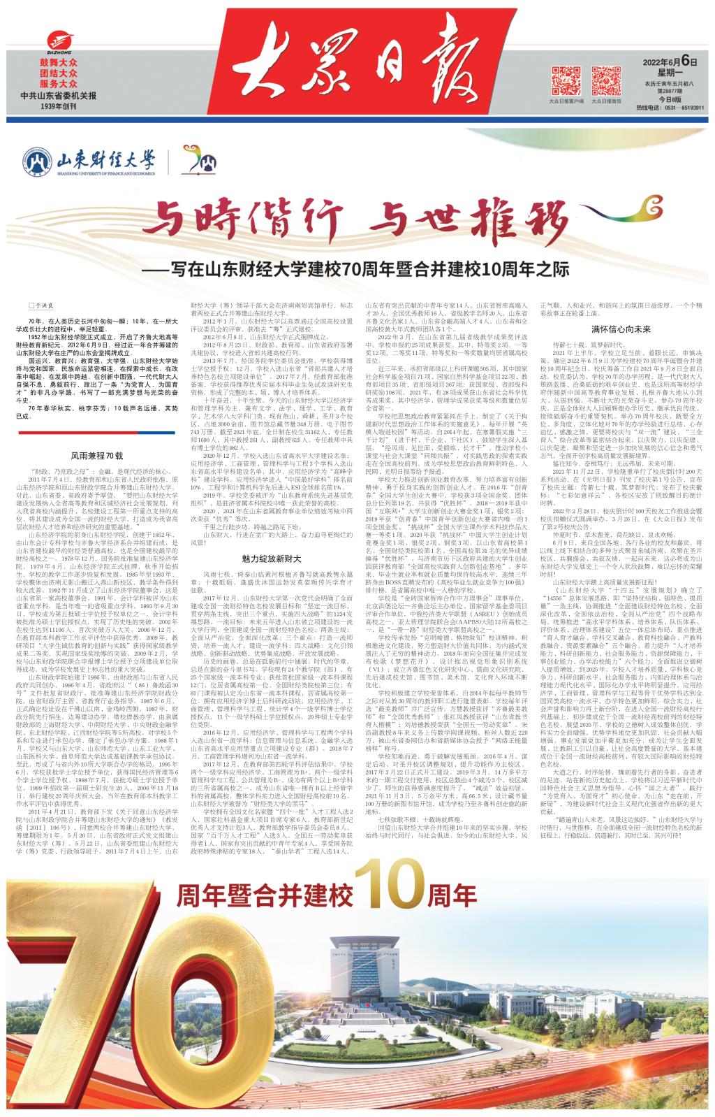 回望山东财经大学合并组建10年来的坚实步履,学校始终与时代同行,与社会俱进。如今的山东财经大学,风正气顺,人和业兴,和谐向上的氛围日益浓厚,一个个精彩故事正在轮番上演。